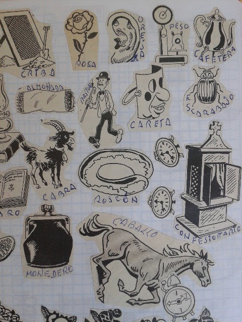 10.30; Visitas a domicilio: hoy tuve la suerte de poder hacer una Visita de bloque >>VER QUÉ ES: se trata de un edificio donde viven unas cuantas personas mayores a las que acompaño desde hace tiempo. En este caso, Pepa y Lola (nombres ficticios, claro), vecinas, perdieron a sus maridos hace pocos años, al poco de acabar un taller de «envejecimiento activo» que hicimos en mi centro. Por eso nos une mucho más: el grupo consigue un vínculo entre profesional y ciudadno muy diferente al del trabajo individual. El marido de Lola (Mariano), además era un virtuoso de las tijeras, y cada vez que iba a verle me regalaba una de sus obras de arte (páginas de cosas recortadas de periódicos y comics), cuya foto os adjunto porque vale la pena: no podía salir de casa, pero su cabeza no paraba de crear.